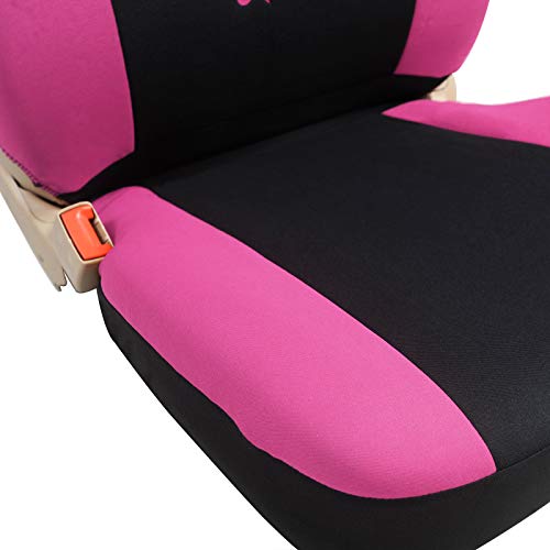 WOLTU 7252+7160 Set Completo di Coprisedili Auto 5 Posti Seat Cover Protezioni Universali per Macchina con Motivo Ricamato Tessuto Poliestere Nero/Roso