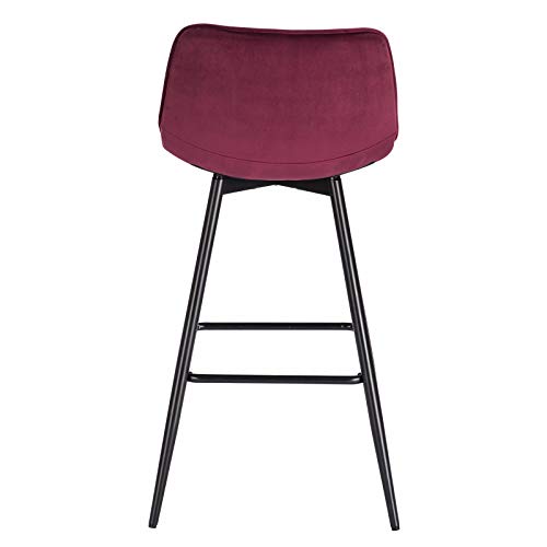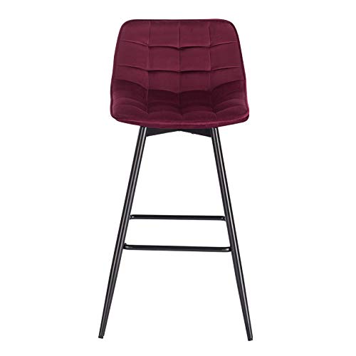 WOLTU BH143bd-2 Sgabelli da Bar Stile Industriale Alta Sedia da Cucina Rivestimento in Velluto Bordeaux Gambe in Metallo 2 Pezzi