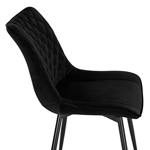WOLTU BH209sz-2 Sedie da Pranzo senza Braccioli Sgabello da Cucina Imbottito con Rivestimento in Velluto Nero 2 Pezzi