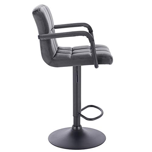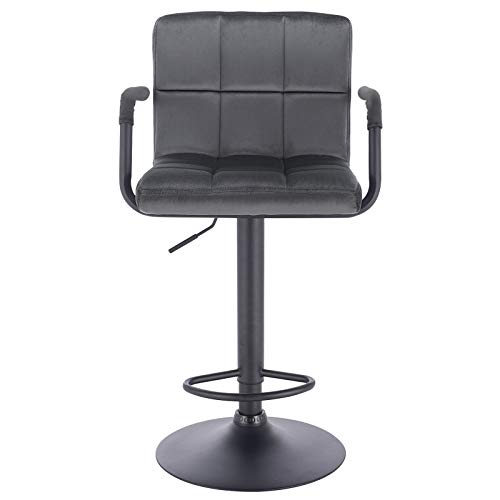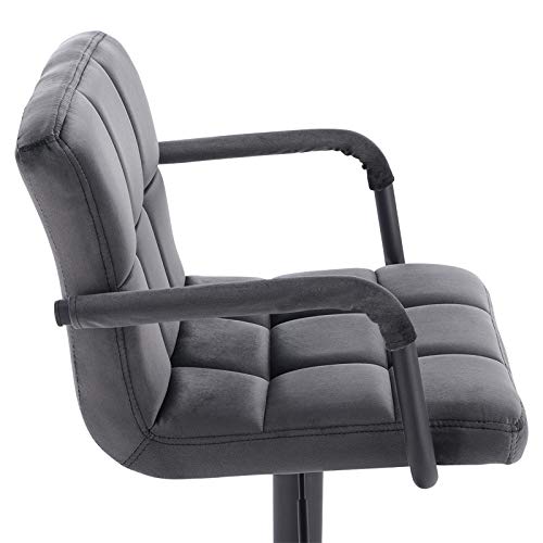 WOLTU BH223dgr-2 Coppia Sgabelli da Bar in Velluto Sedia per Cucina Girevole con Schienale Braccioli Grigio Scuro