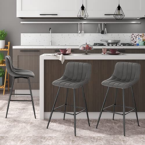 WOLTU BH253dgr-2 Sgabelli da Bar Seduta Fissa con Poggiapiedi Sedia da Cucina in Velluto Grigio Scuro 2 Pezzi