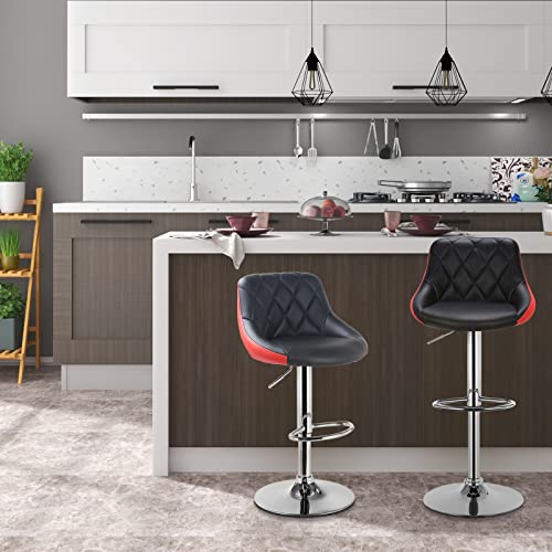WOLTU BH30szr-2 Sgabelli da Bar Sedia Cucina con Schienale Poggiapiedi Similpelle Cromato Altezza Regolabile Girevole Moderni Classici Colorato Nero+Rosso Coppia Set 2