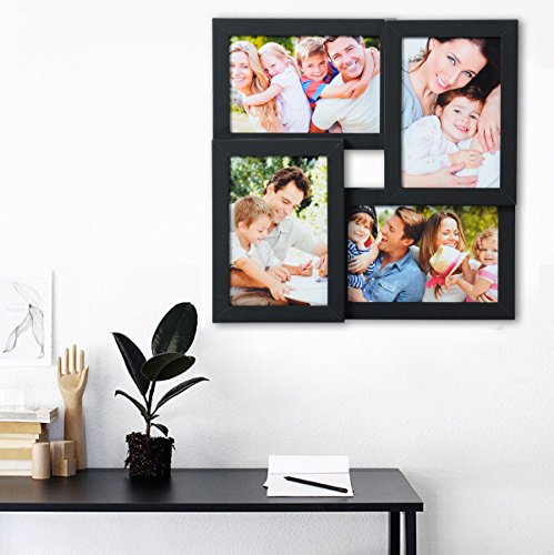 WOLTU BR9641sz Cornici Foto Multiple per 4 Foto Collage da Parete Personalizzati Cornice in Legno e PVC Portafoto Cornice Creativa Fotogramma Decorativo Nera