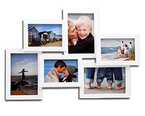 WOLTU BR9729 Cornice Multipla per 6 Foto Cornice da Parete Appendere al Muro Portafoto in Plastica Vetro Album Bianco