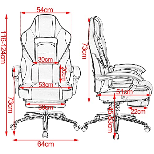 DESIGN ACCURATO: Con cuscino lombare comodo, braccioli coordinati e poggiapiedi estensibile, questa poltrona gaming confortevole e ergonomica è dotata di meccanismo basculante e schienale reclinabile (90-170°), offrendoti il massimo comfort e relax