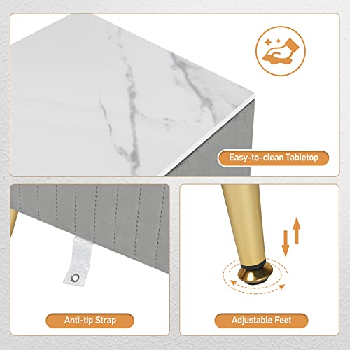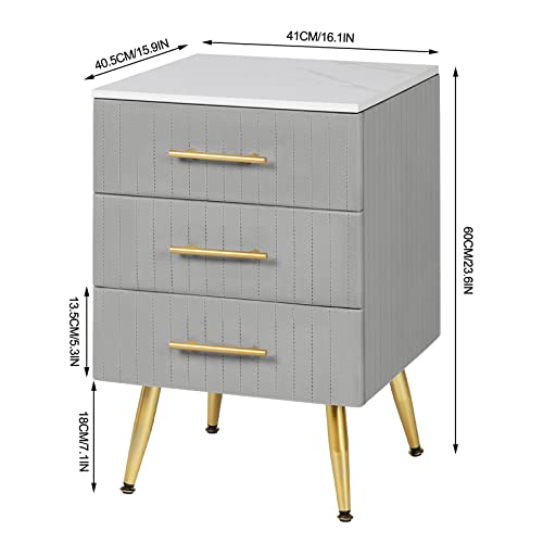 DESIGN ELEGANTE: Il comodino rivestito di velluto grigio porterà subito un tocco di eleganza unica nella tua stanza, rendendola più accogliente e chic. Oltre che in camera da letto, è adatto anche in salotto, corridoio, ufficio o ingresso