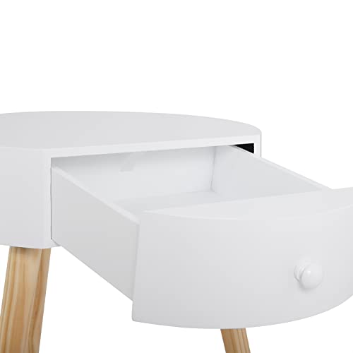 Stile scandinavo: Il tavolino bianco rotondo WOLTU presenta un aspetto semplice, compatto e sofisticato, la combinazione del colore bianco e le gambe color legno lo rendono chic ed elegante. È perfetto per abbellire stanze in qualsiasi stile di arredamento. Questo tavolino per camera da letto è il riflesso dello stile moderno e sobrio