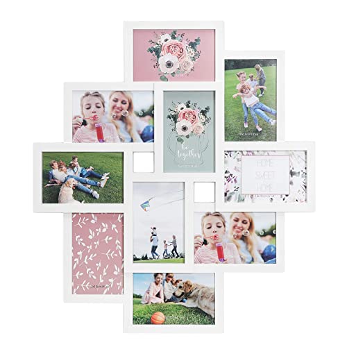 WOLTU Cornice Portafoto Multiplo per 10 Foto in 10x15 cm, Cornice per Foto da Parete in Plastica, Montaggio Verticale o Orizzontale, Collage Foto Decorazione da Parete, Bianco