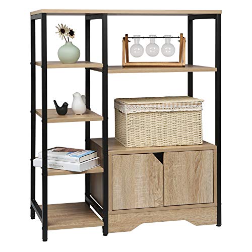 WOLTU Libreria Moderna Design, 80 x 35 x 97 cm, Scaffale Portaoggetti per Libri CD, con Ante in Legno e Metallo, Rovere Chiaro RGB08hei