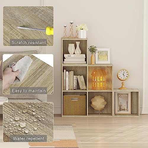 WOLTU Libreria a 6 Scomparti, Scaffale Portaoggetti Autoportante a Scala, Montaggio Flessibile, per Soggiorno, Camera da letto, Ufficio, in Truciolare, Rovere Chiaro, 90x30x90cm, SK027hei