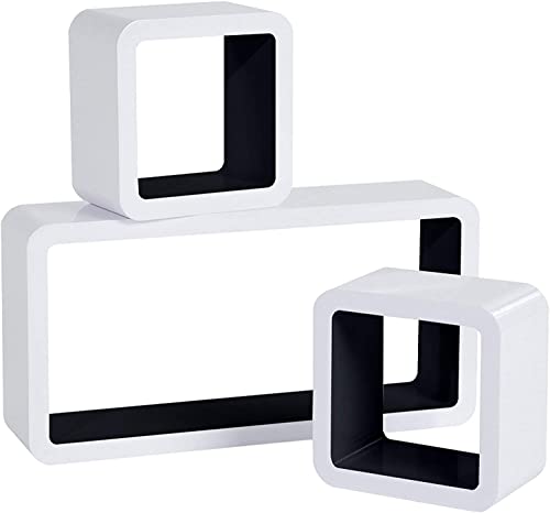 WOLTU Mensole da Muro Mensola a Cubo Scaffale Parete Libreria CD Legno MDF Moderno 3 Pezzi Diametro Diverso Nero-Bianco RG9229sz