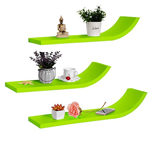 WOLTU Mensole da Muro Scaffale Parete Libreria CD/Dvd Decorazione per Cameretta Design Moderno 3 Pezzi Diametri Diversi Verde RG9271gn