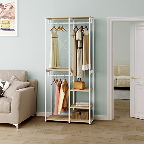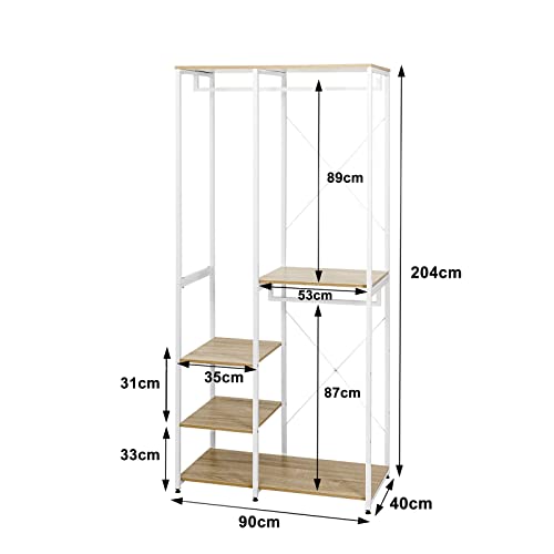 WOLTU Porta Abiti in MDF e Acciaio, Appendiabiti con Scaffali, Attaccapanni Moderno, Guardaroba Armadio Bianco 90x40x204,5 cm SR0062whe