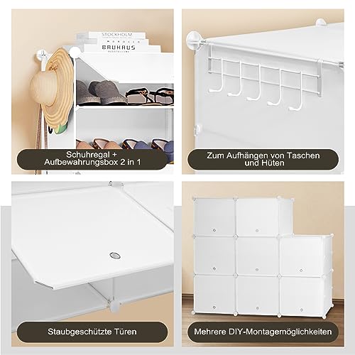 OTTIMO PER LO STOCCAGGIO: La scarpiera ha 8 cubi con 2 livelli ciascuno per ospitare fino a 32 paia di scarpe. Rimuovendo i divisori, ottieni un cubo più grande per stivali, peluche ecc. Con i ganci laterali, puoi appendere borse, chiavi, ombrelli...