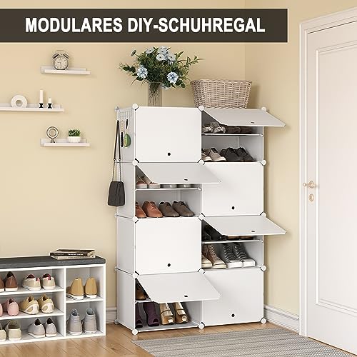 WOLTU Scarpiera da Ingresso, Porta Scarpe con 8 Scomparti, Scarpiera Modulare per 32 Paia di Scarpe, Contenitore per Scarpe con Porte, in Plastica e Metallo, Bianco, SRX26ws