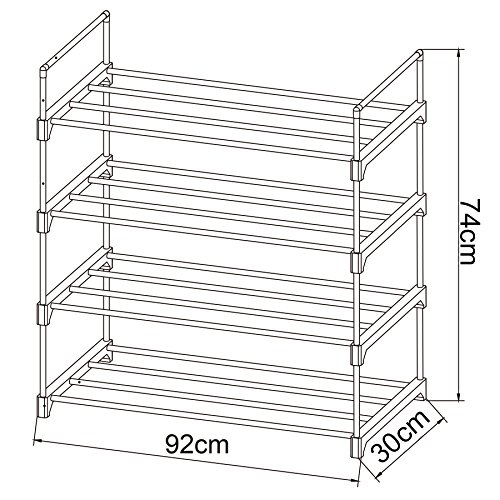 WOLTU Scarpiera 4 Ripiani Portascarpe Semplice Scaffale per 20 Paia di Scarpe in Acciaio e Plastica Grigio SR0005