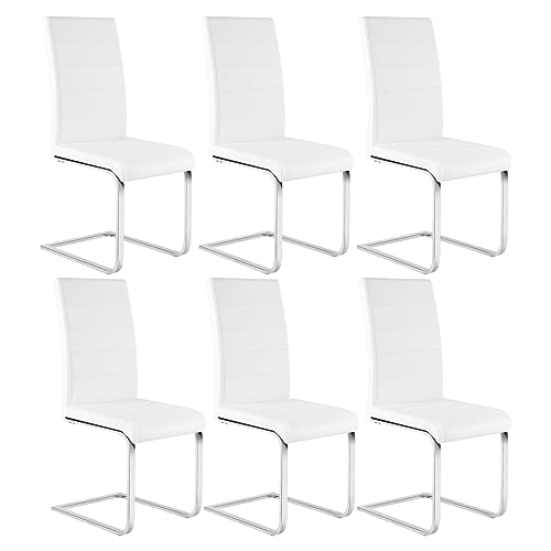 WOLTU Set di 6 Sedie per Sala da Pranzo, Sedie da Cucina Moderne con Schienale Alto, Sedie Cantilever Imbottite Ergonomiche per Soggiorno, Ufficio, in PU, Bianco, BH378ws-6
