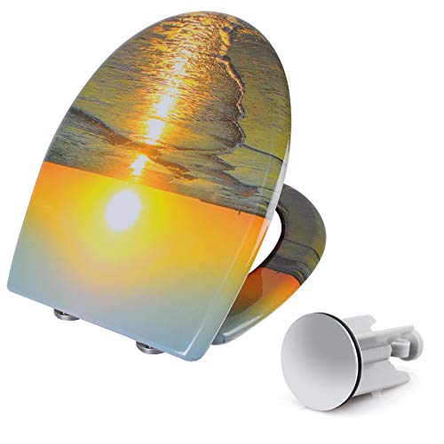 Woltu #1, Sedile del water con abbassamento automatico, in plastica termoindurente, con cerniere cromate inossidabili (con kit di montaggio), chiusura Soft Close, antibatterico, multicolore, WS2439