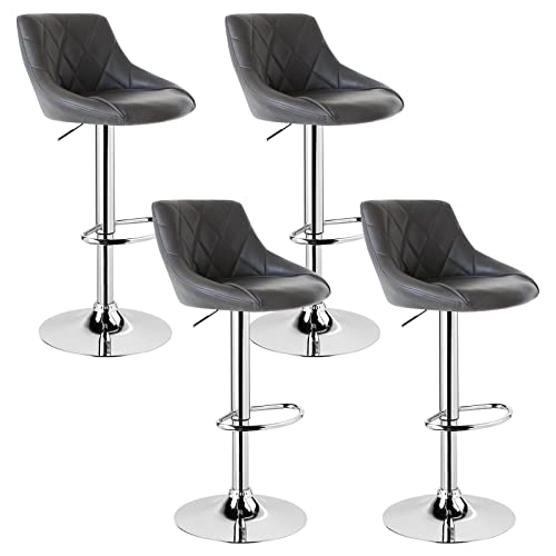 WOLTU 4X Sgabelli da Bar Alta Sedia Girevole Cucina con Schienale Poggiapiedi in Ecopelle Grigio, Regolabile in Altezza 9184-4