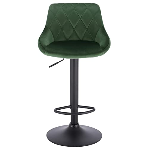 WOLTU 4x Sgabelli da Bar Moderni Girevoli Sedia Cucina Alta con Schienale Quadrato Senza Braccioli Altezza Regolabile in Velluto Verde Scuro BH219dgn-4