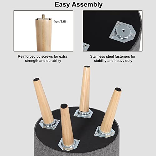 FACILE DA INSTALLARE: Basta assemblare le 4 gambe di pino per ottenere un pouf rotondo, stabile e non traballante. Quando non è in uso, le gambe in legno possono essere rimosse e riposte nello sgabello portaoggetti per risparmiare spazio