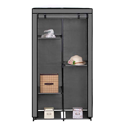 WOLTU SS5025gr Guardaroba Pieghevoli per Vestiti Armadio Antipolvere Appendiabito Tubi D'acciaio e Copertura in Tessuto Traspirante Resistente Camera Interni Grigio 89x46x169cm