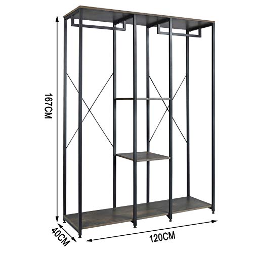 WOLTU Stand Appendiabiti con Ripiani Attaccapanni Guardaroba Armadio Scaffale Porta Abiti in Legno Acciaio 120x40x167 cm SR0048srs