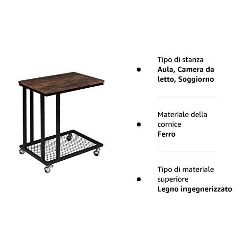 DESIGN VINTAGE: il telaio di ferro nero e il ripiano color legno scuro rappresentano uno stile industriale, e l'aspetto semplice e vintage si combina in modo armonioso con gli altri mobili presenti. Puoi riporre libri, riviste, giornali, piante, oggetti decorativi ecc. sul tavolino