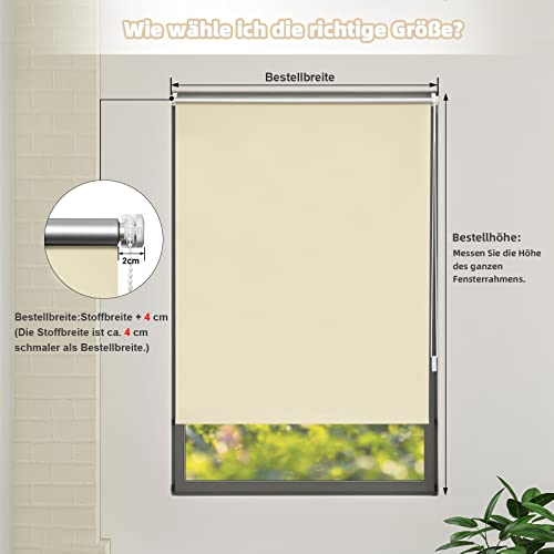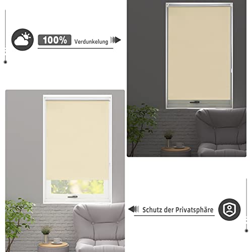 WOLTU TR5700be06 Tenda a Rullo Tenda Oscurante Avvolgibile Termica Isolante con Morsetto Laterale Klemmfix Senza Fori per Finestre Porte 90x160cm Beige
