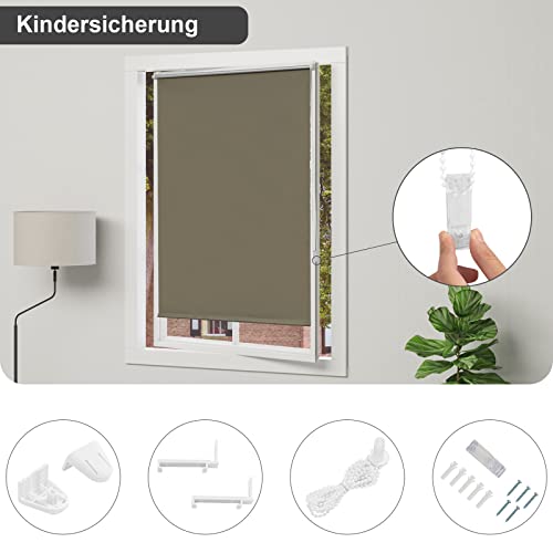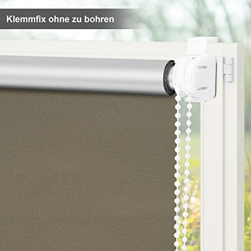 WOLTU TR5700ta07 Tenda a Rullo Tenda Oscurante Avvolgibile Termica Isolante con Morsetto Laterale Klemmfix Senza Fori per Finestre Porte 95x160cm Tortora