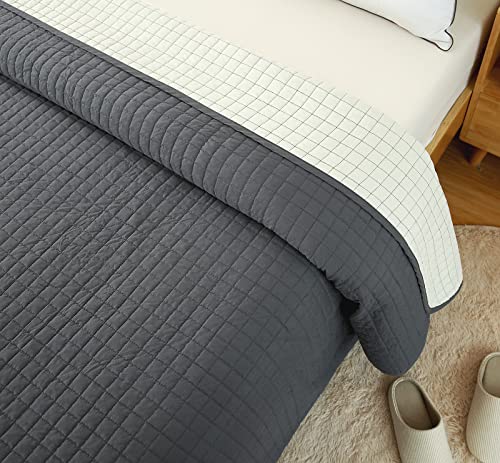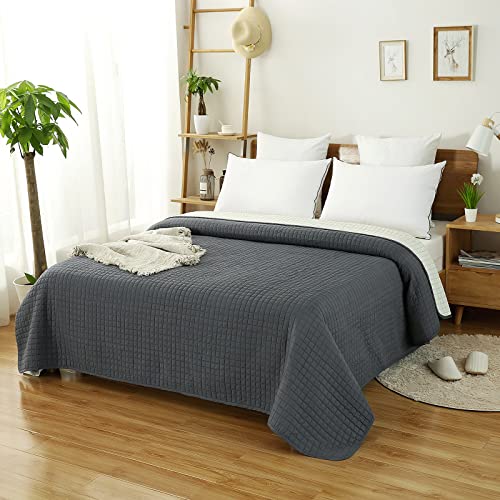 WOLTU Trapuntino Copriletto Tinta Unita, Copriletto Trapuntato Double Face Reversibile, Trapunta Matrimoniale 170x210 cm Grigio+Beige