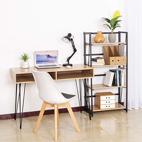 WOLTU TS49hei Scrivania Moderna con 2 Scompartimento Aperto, Tavolo da Studio Ufficio PC Computer Libreria Scaffale Legno Acciaio 110x50x76 cm