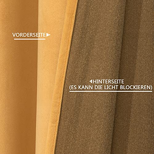 WOLTU VH6066sef Tenda Oscurante con Occhielli Tenda Termica Opaca in Velluto 300 g/m² Tenda Pesante per Soggiorno Camera da Letto 1 Pannello Giallo Senape 140x225 cm