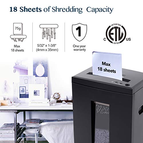 WOLVERINE, distruggidocumenti a taglio incrociato con livello di sicurezza P4, capacità 18 fogli,funzionamento silenzioso, ciclo di lavoro 60 minuti, cestino rimovibile da 22 L, SD9113, nero