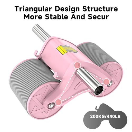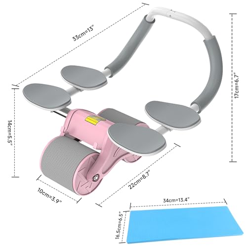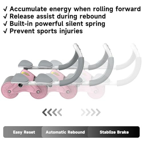 Womamny Ruota per Addominali a Rimbalzo Automatico, Attrezzo per Addominali con 4 Supporto per Gomito & Ginocchiere, Doppie Ruote a Rulli per Core Trainer, Multifunzione Attrezzi Palestra Cas