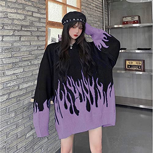Womans Oversize Baggy Chunky Knit Fiamma Maglioni E-Girl Grunge Vestiti Harajuku Estetico Pullover Maglieria (Colore: Viola, Taglia: Unica)