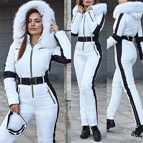 Women Winter Ski Suit Suit Snowsuit Tursuit Outdoor Hooded Wetsuit Togliti Facile,Bianca,S