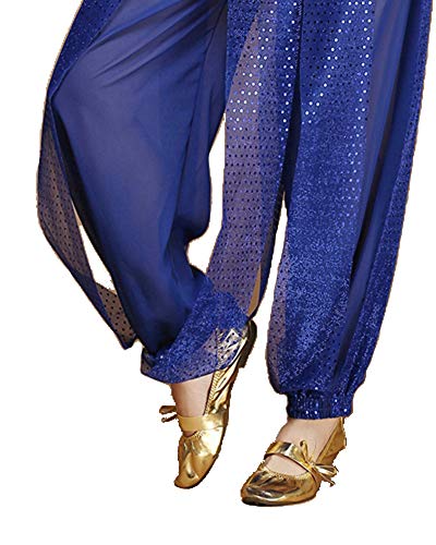 Womens danzatrice del Ventre 4 Pezzi Vestito Costume Set con Sciarpa Top Pantaloni Testa Velo alla Moda per la Danza egiziana Arabo (Blu) (Taglia Unica)