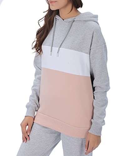 M17 Womens Ladies Stripe Colour Block Hoodie Pullover Soft Cosy Casual Hooded Sweatshirt Top Long Sleeve Jacket Jumper (L, Grey), Donna
