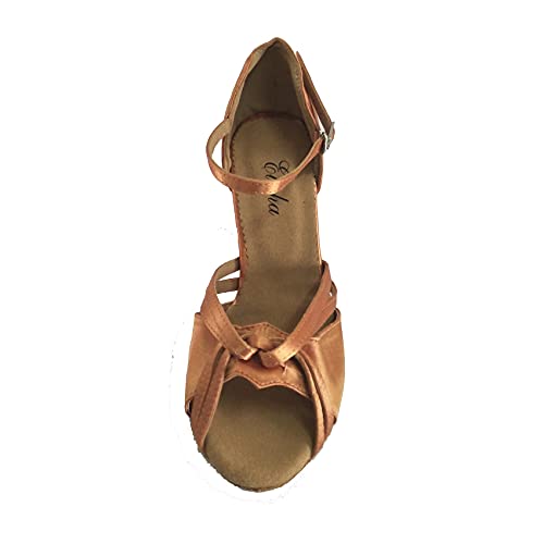 Womens latino scarpe da ballo Open Toe Salsa Indoor sala da ballo Softsole partito scarpe da ballo raso più colori, marrone (Tacco marrone chiaro, 7 cm), 35.5 EU
