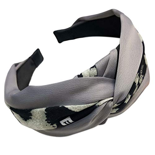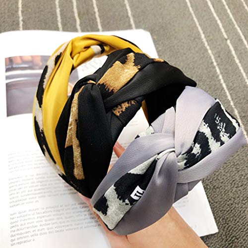 Womens Vintage Twisted Nodo Tessuto Avvolto Colore della Fascia Leopardo Patchwork Capelli Larghezza Cerchio Retro Intrecciato Elastico Casual Headwear 3 Colori Grigio