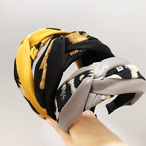 Elasticizzato, incrociato ritorto, design annodato, stampa del motivo leopardato del blocco di colore, cerchio dei capelli larghi.
