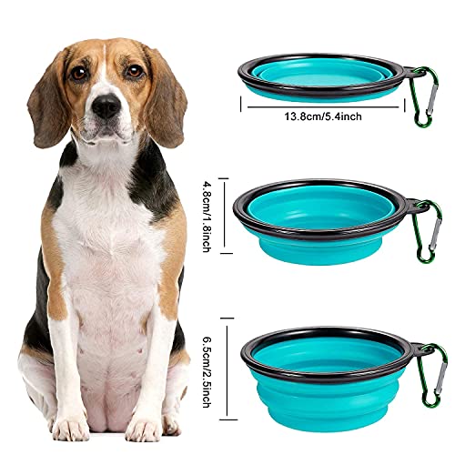 Bottiglia per cani da viaggio con 2 ciotole pieghevoli per cani: bottiglia d'acqua per cani con 2 ciotole per cani pieghevoli, e un gancio sul biberon per appendere la ciotola pieghevole.