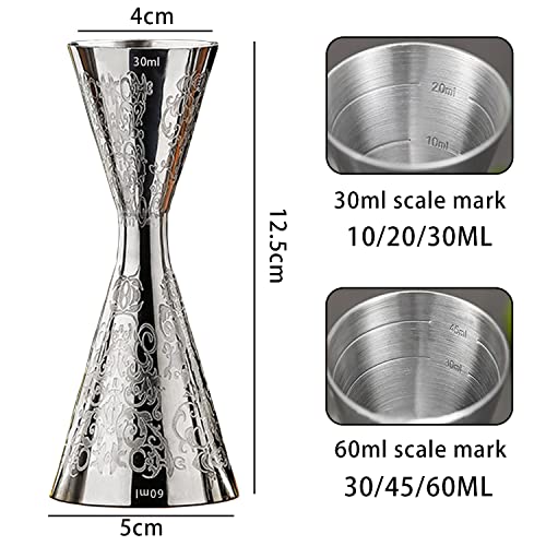 WOMLEX Misurino da cocktail con scala interna per cocktail - acciaio inox 304, adatto per bar e appartamenti (elfo, 30 ml e 60 ml)