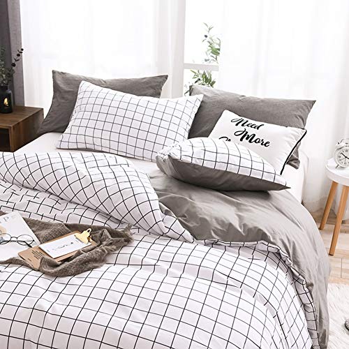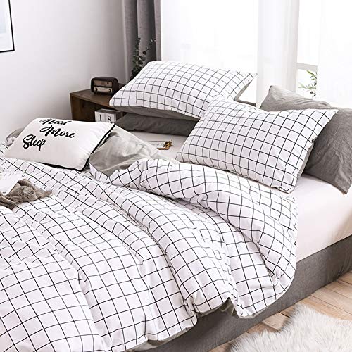 Wondder Set Copripiumino, Set di Biancheria da Letto in Cotone 100% con Motivo Geometrico Classico Traspirante e Morbido Piccolo Reticolo Bianco King 220x240cm