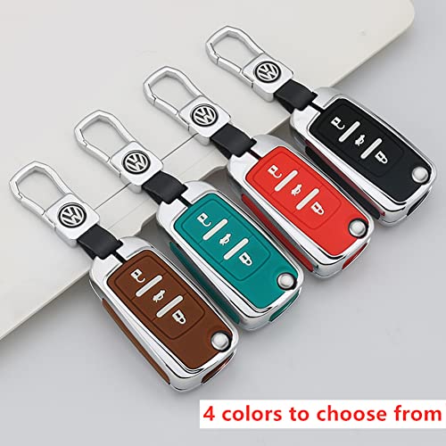 Wondder Portachiavi per Auto in Lega di Zinco Coperchio + Guscio Senza Chiave in Silicone Applicabile per volkswagen v-w Golf 4 5 6 MK6 Polo Tiguan Passat B5 B6 B7 Jetta Lavida Skoda Octavia (Marrone)