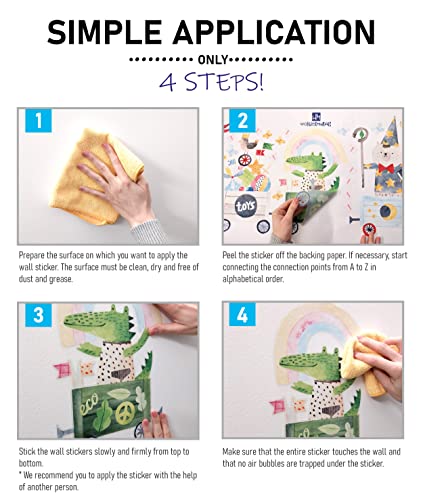 MATERIALE - L'adesivo da parete è realizzato in PVC impermeabile. L'utilizzo di materiali ecocompatibili garantisce la massima sicurezza in conformità con le norme sulla cura dei bambini.