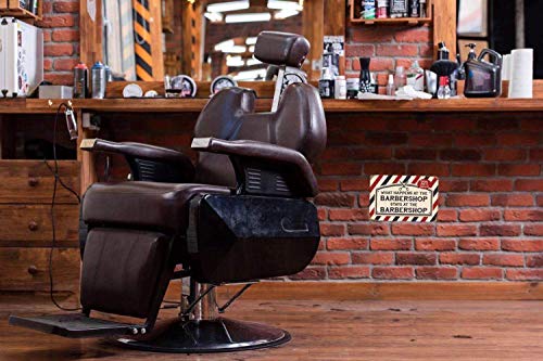 WONDERCAVE Cartello in metallo con scritta "What happens at the barbershop" (lingua italiana non garantita) per bar, bar, bar, garage, decorazione da parete, vintage, 7,87 x 30 cm