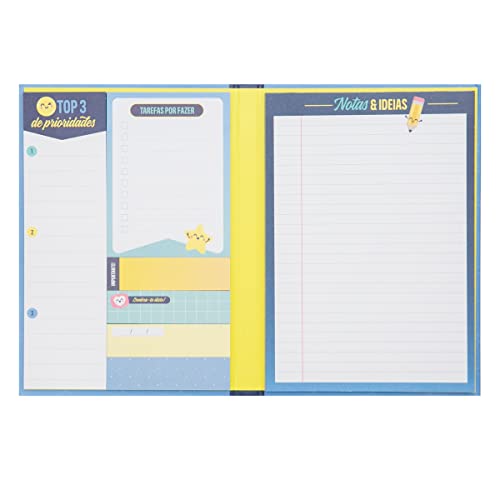 Caderno a strato rigido com bloco di note e note adesive no seu interno.