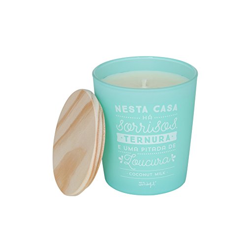 Mr.Wonderful - Candela con Frase in Questa casa Ci Sono sorrisi, Dolcezza ed Un Pizzico di Follia in Lingua Portoghese